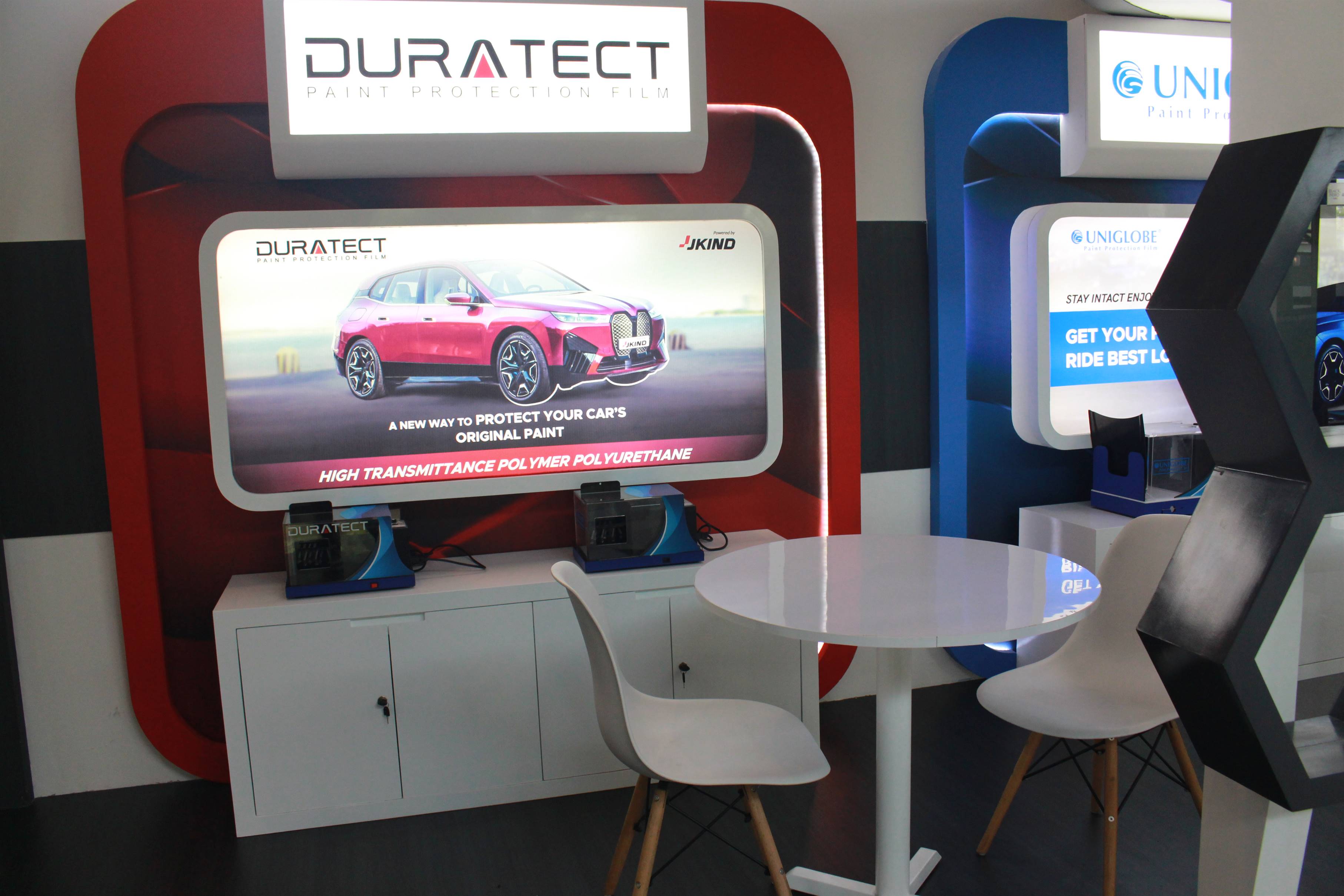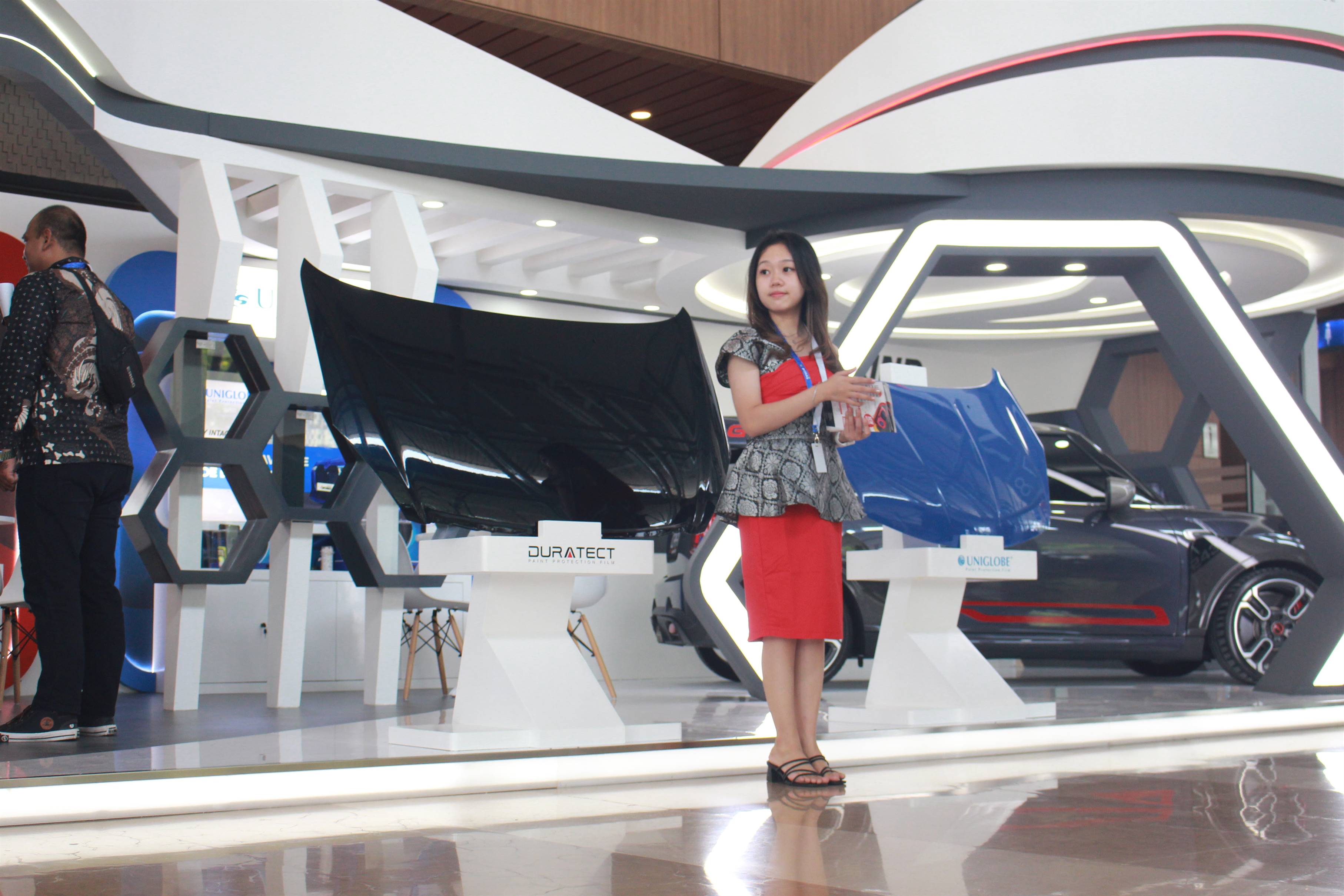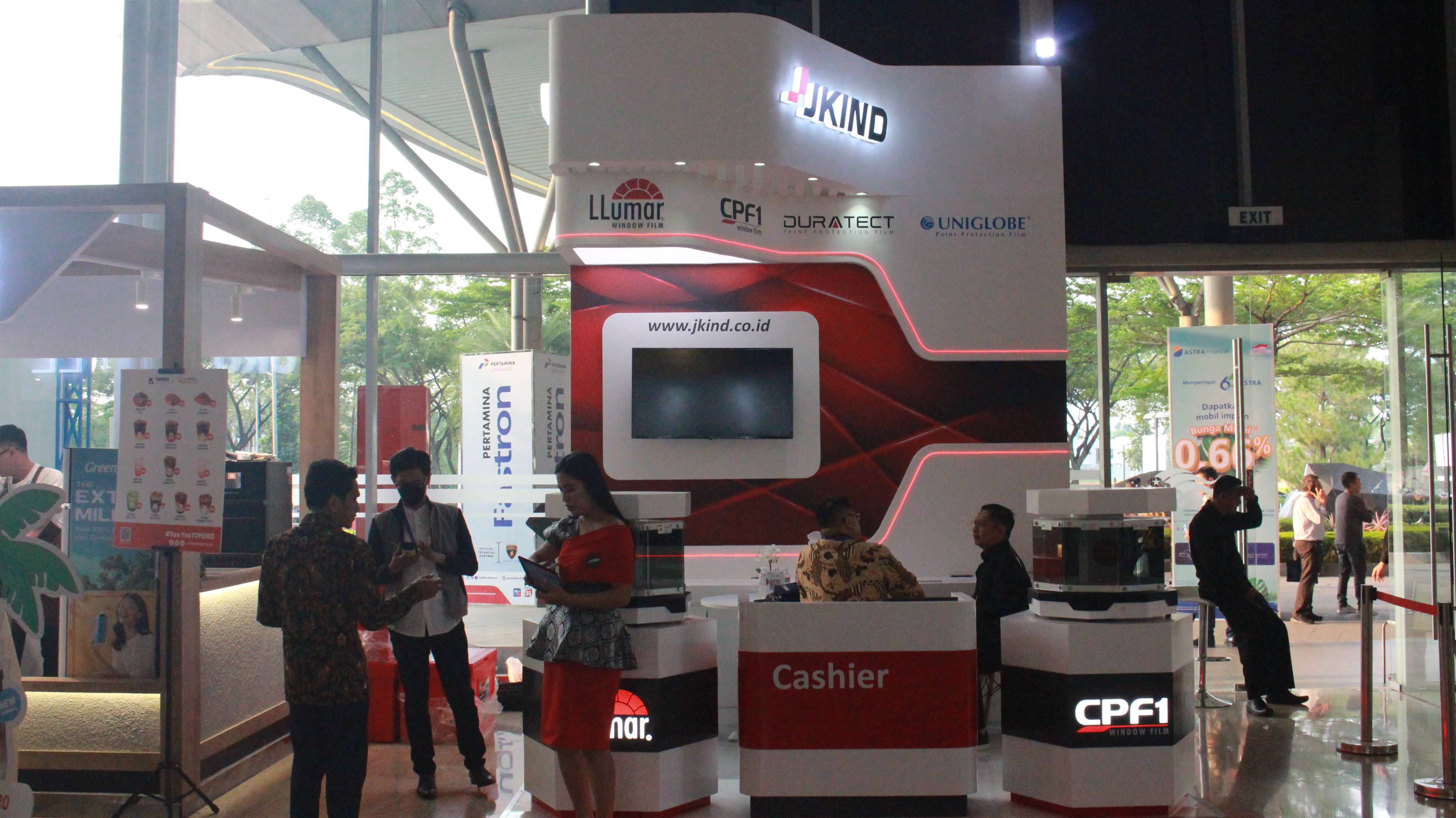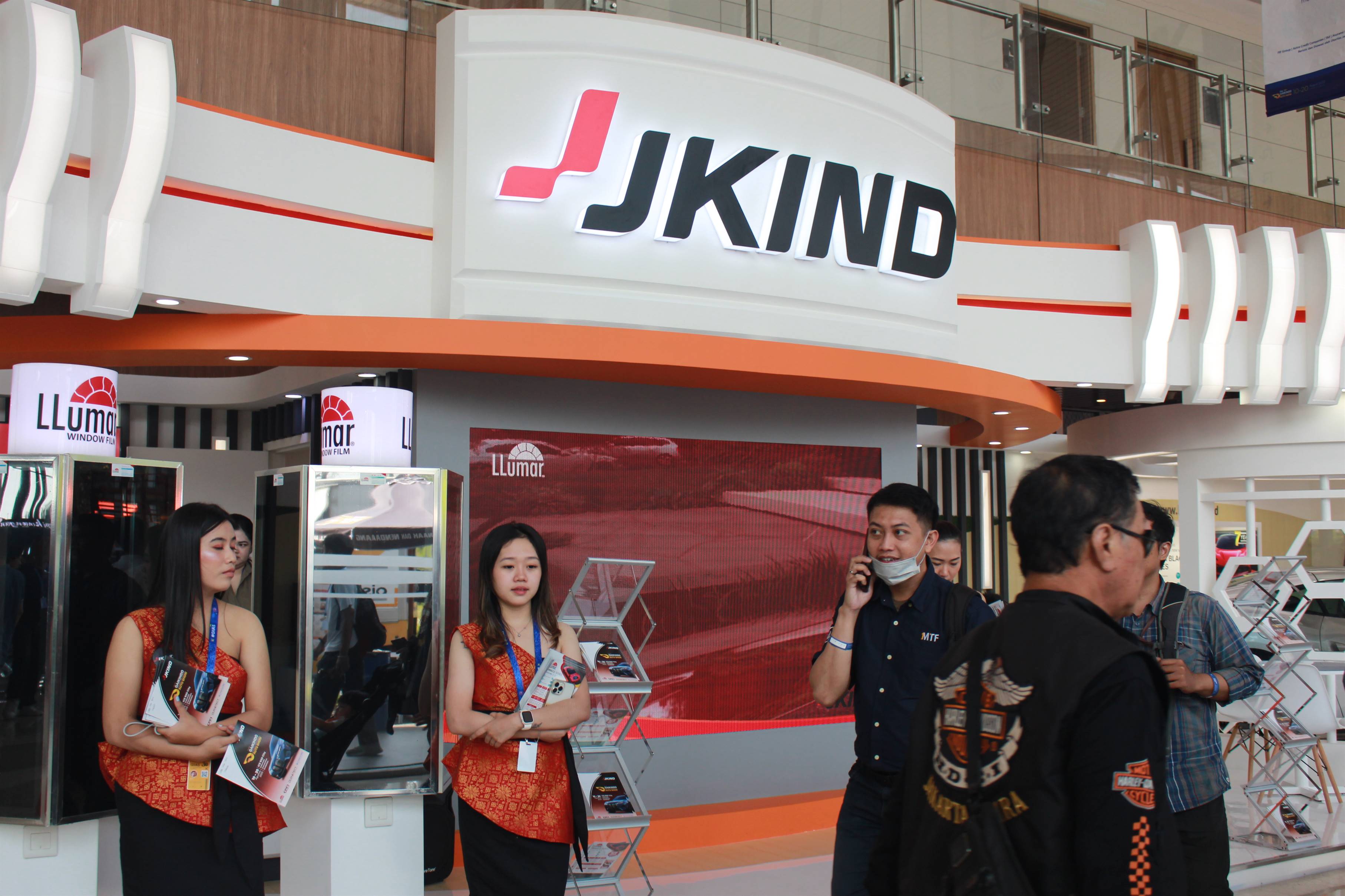 Dari kelima booth yang dihadirkan, dua di antaranya adalah booth utama yang ditempati oleh merek-merek andalan JKIND, yaitu LLumar (hall 8), CPF1 dan DURATECT (hall 6). Booth ini menjadi pusat perhatian dengan tampilan yang menarik dan inovatif, menghadirkan beragam produk kaca film dan PPF (Paint Protection Film), pada saat itu JKIND juga menampilkan berbagai display dan alat tester.